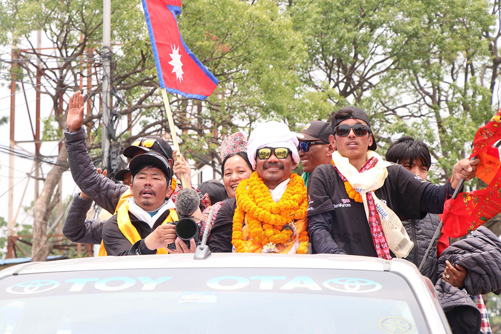 कृत्रिम खुट्टाको भरमा सगरमाथा चढेका हरिको भव्य स्वागत, मन्त्री किराँती पनि विमानस्थल पुगे मध्यस्थता २०८० जेष्ठ ९