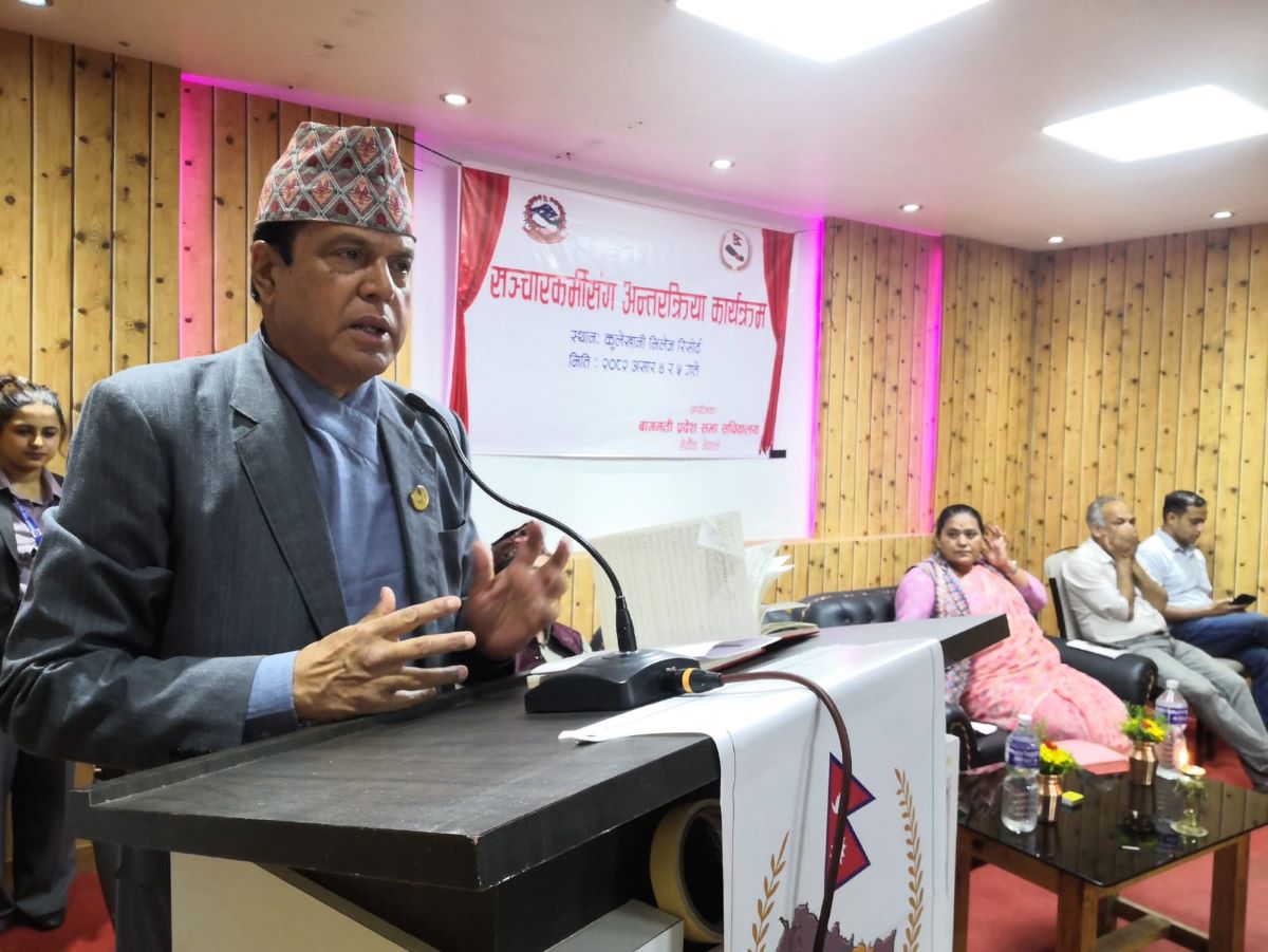 कार्यक्रम उद्घाटनमा बागमती प्रदेश सभाका सभामुख भुवन कुमार पाठकले पछिल्लो समय सूचना प्रविधिमा भइरहेको विकासले पत्रकारिता क्षेत्रमा चुनौती थपिएको बताए । उनले छापा, रेडियो, टेलिभिजन हुँदै अहिलेको एआइसम्मको विकासलाई पछ्याउँदै अघि बढ्नुपर्ने आवश्यकता रहेकोमा जोड दिए । ‘सूचना प्रविधीको विकाससँगै सञ्चार माध्यमको भूमिकामा पनि परिवर्तन आएको छ ।’ उनले भने, ‘सामाजिक सञ्जालले हरेक नागरिकलाई सञ्चारकर्मी बनाएकाले समाजमा सही सूचना सम्प्रेषणमा समस्या सिर्जना भएको छ ।’